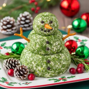 A fun party appetizer, shaped like a snowman and covered in herbs for a snowy effect.