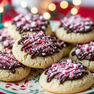 Soft cookies topped with crushed peppermint and chocolate drizzle make a perfect TikTok-worthy treat.