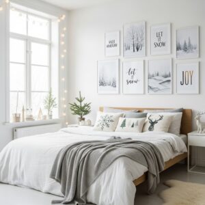 Framed posters featuring snowy landscapes, festive illustrations, or holiday typography add instant seasonal flair and help your décor feel intentional and styled.