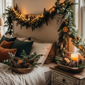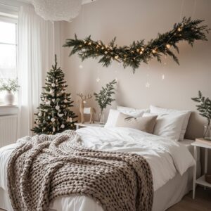 With the right combination of lighting, texture, greenery, and festive accents, your bedroom becomes the perfect Christmas retreat.