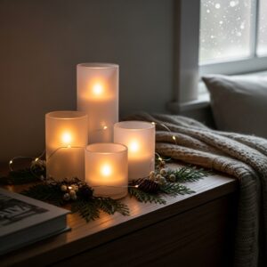 Nothing sets the mood like seasonal fragrances. Choose candles in scents like pine, cinnamon, peppermint, or vanilla sugar.