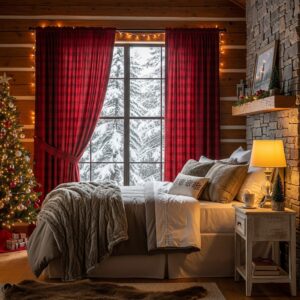 If you want a bold transformation, consider swapping your curtains for holiday-themed ones in red plaid, winter whites, or subtle snowflake patterns.