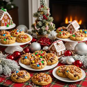 Chocolate chip cookies get a Christmas makeover with red and green candy-coated chocolates.
