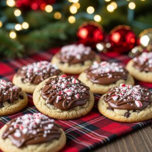 Swap classic peppermint bark for cookie versions—soft sugar cookies topped with melted chocolate and crushed candy canes.