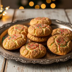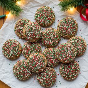 These cheerful cookies are rolled in red, green, and white sprinkles before baking, giving them a bright holiday appearance.