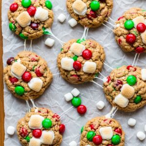 A fun treat made with melted marshmallows, butter, and colorful holiday M&Ms or confetti sprinkles.