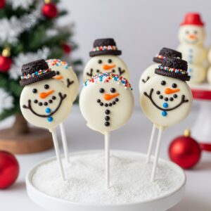 Coat each Oreo with melted chocolate and decorate with faces, scarves, and buttons to create miniature snowmen—great for kids’ holiday parties.
