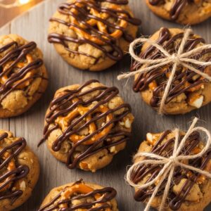 A mix of salty and sweet, these cookies combine crushed pretzels, caramel sauce, and melted chocolate.