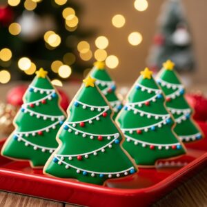 Cut tree shapes from green-tinted cookie dough or decorate plain dough with green royal icing.
