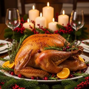 A golden, juicy turkey infused with garlic, rosemary, and thyme—perfect as your show-stopping Christmas main dish.