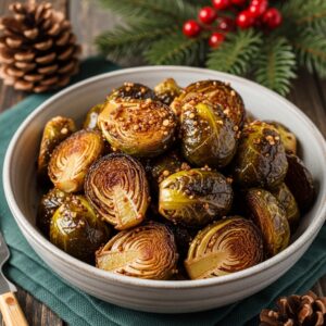Crispy Brussels sprouts coated with maple syrup and roasted to caramelized perfection.