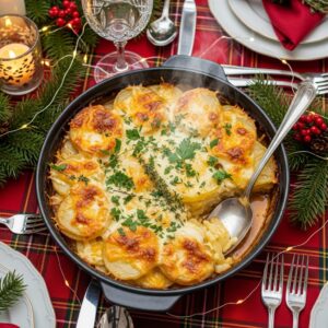 Layers of thin-sliced potatoes baked in a creamy, cheesy sauce—rich and comforting.