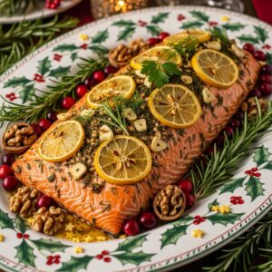 A light and flavorful Christmas main featuring flaky salmon with citrus and herbs.
