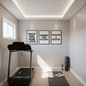 Adding motivational posters or quotes can enhance the gym’s atmosphere.