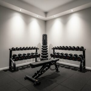 Even in a small room, this section can provide a focused space for strength training exercises.