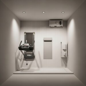 This allows you to fit more equipment in the small room without blocking the entrance.