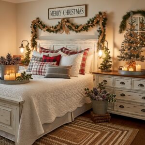 Decorating your bedroom for Christmas doesn’t require a full makeover—just thoughtful, cozy elements that bring warmth, twinkle, and holiday joy.