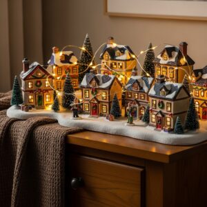 Add battery-powered LED lights inside the houses for a glowing nighttime scene full of charm.
