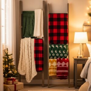 Choose blankets in holiday patterns like buffalo plaid, Scandinavian snowflakes, or winter whites.