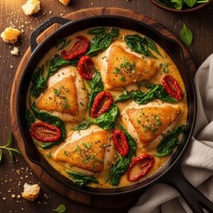 Rich with sun-dried tomatoes and spinach, this recipe feels fancy but is easy to make.