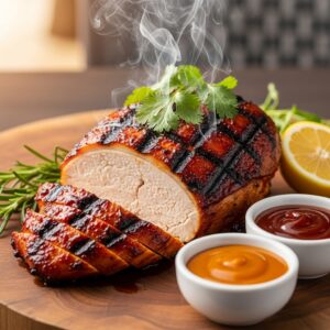Juicy chicken coated with smoky-sweet BBQ sauce.