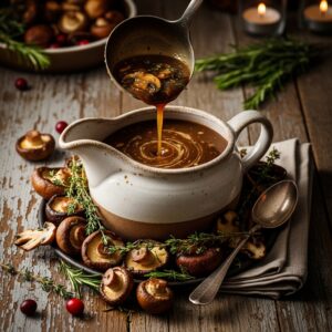A rich gravy made from sautéed mushrooms—fantastic with turkey, beef, or potatoes.