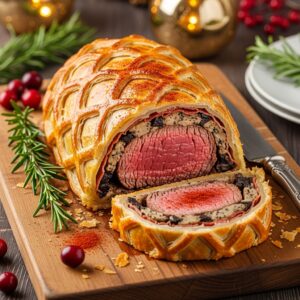 Tender beef wrapped in mushrooms and puff pastry—an elegant holiday feast.