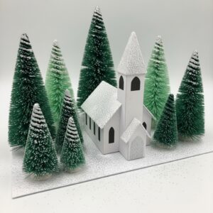 Paint it white, add a gold cross or bell detail, and surround it with trees made from green cardstock cones.