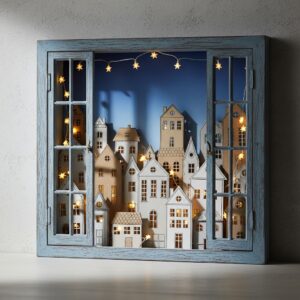 It’s like a shadow-box village scene that can sit on any shelf or mantel.