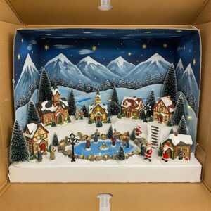 Cut out windows and doors, paint the inside with a snowy backdrop, and add your mini cardboard houses inside.