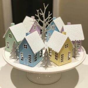 Paint them white or pastel colors, add windows with marker outlines, and sprinkle glitter for snow.