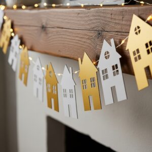 Cut out mini house shapes, paint and decorate them, then string them together with twine to hang across your wall or mantel.