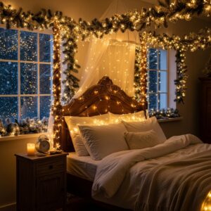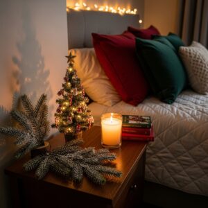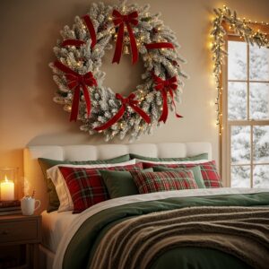 Decorating your bedroom for Christmas is all about warmth, comfort, and personal joy.