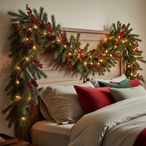 3. Christmas Garland Over the Headboard