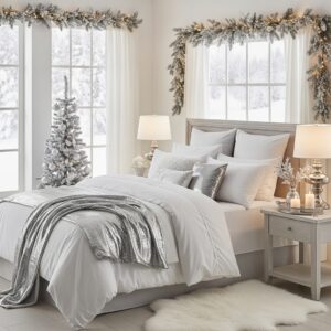 Add flocked garland, white bedding, crystal ornaments, and snowy accents for a serene winter retreat.