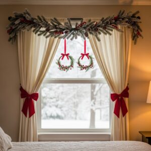 Swap your regular tiebacks for decorative options like red velvet bows, mini wreaths, jute rope, or garland strands.