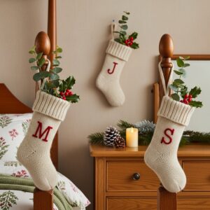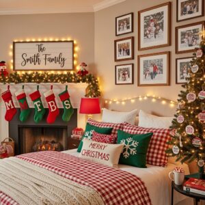 Add monogram stockings, custom family name signs, personalized ornaments, or printed photos from Christmas memories.