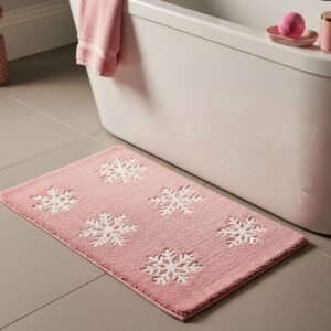Add a pink Christmas bath mat with festive designs like snowflakes, stars, or Santa hats.
