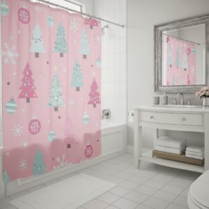 Choose a curtain with pink Christmas trees, ornaments, or snowy patterns.