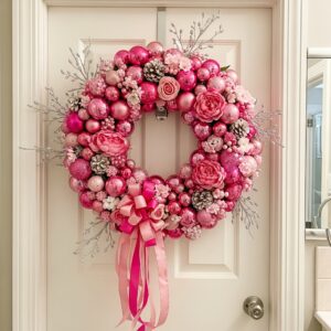 You can either buy a pre-made pink wreath or DIY one using pink ornaments, faux flowers, or ribbons.