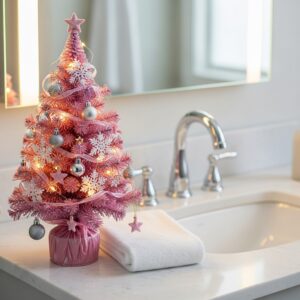 Place a small tabletop pink Christmas tree on your vanity or in a corner of the bathroom.