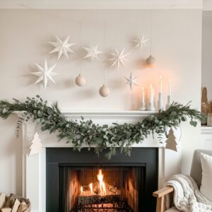 Add plush stockings, glowing lanterns, and even a string of hanging snowflakes or stars above the mantle.