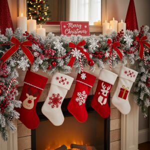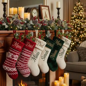 Knit or faux fur stockings instantly add warmth and texture, while personalized embroidered stockings bring a sentimental touch.