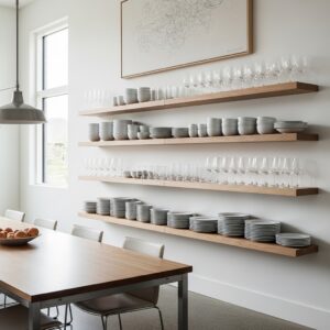 Floating shelves in particular can add a light, modern feel and work well in smaller dining rooms where space is limited.