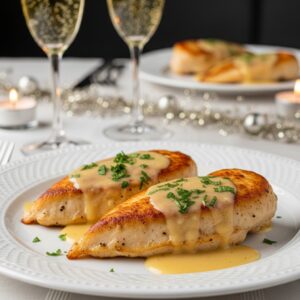 A creamy, delicate chicken dish cooked in a Champagne reduction for the perfect New Year’s touch.