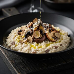 Creamy, velvety risotto scented with truffle oil and earthy mushrooms — a luxurious side or vegetarian main.