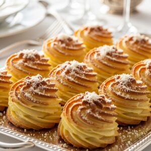 Elegant piped potato swirls with crispy edges and a creamy center — perfect for a fancy NYE plate presentation.