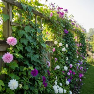 Adding climbing plants like ivy, clematis, or climbing roses to your fence creates a lush, vertical garden.