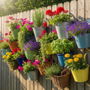 Hanging planters attached directly to your fence are perfect for displaying flowers, herbs, or trailing vines.