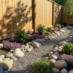 Mixing plants with hardscaping elements gives your fence area a balanced and polished appearance.